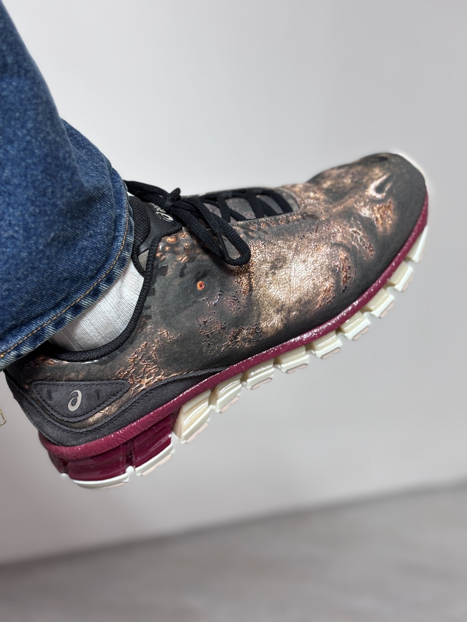 靴全体に光沢のあるクリアプリントが施され、